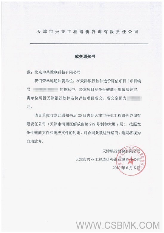 中基數聯(lián)中標天津銀行軟件造價(jià)評估項目