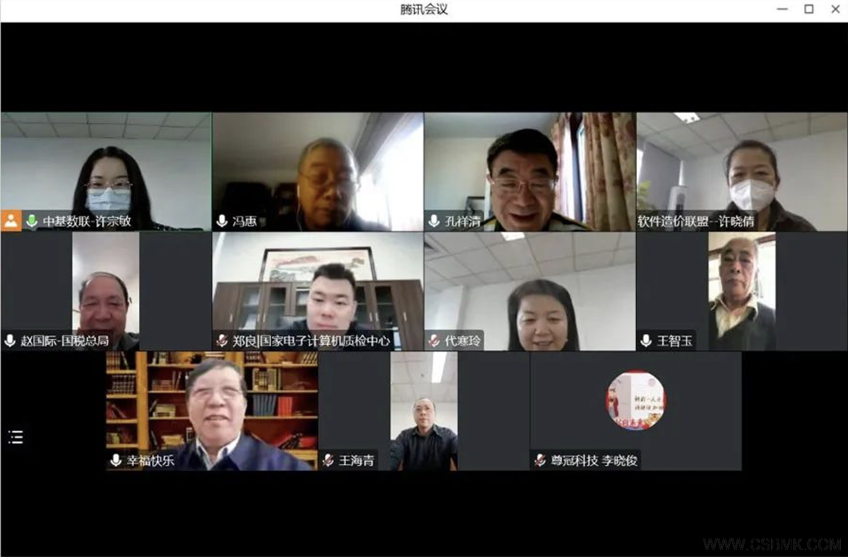 2022年12月27日上午,北京軟件造價(jià)評估技術(shù)創(chuàng )新聯(lián)盟以視頻會(huì )議形式組織專(zhuān)家召開(kāi)團體標準《軟件造價(jià)評估實(shí)施規程(修訂)》(送審稿)審查會(huì ),北京中基數聯(lián)科技有限公司(簡(jiǎn)稱(chēng)中基數聯(lián))受邀主持本次線(xiàn)上會(huì )議。有以下專(zhuān)家參與本次會(huì )議,專(zhuān)家組國務(wù)院法制辦公室信息中心原主任孔祥清、審計署計算機技術(shù)中心原主任王智玉、國家稅務(wù)局征管和科技發(fā)展司原巡視員趙國際、中國電子技術(shù)標準化研究院高級工程師馮惠、國家衛生健康委統計信息中心高級工程師王建凱,起草組北京中基數聯(lián)科技有限公司許宗敏、北京尊冠科技有限公司武漢分公司鄭良,以及聯(lián)盟秘書(shū)長(cháng)代寒玲、首席專(zhuān)家王海青、副秘書(shū)長(cháng)許曉倩共11人參加會(huì )議。