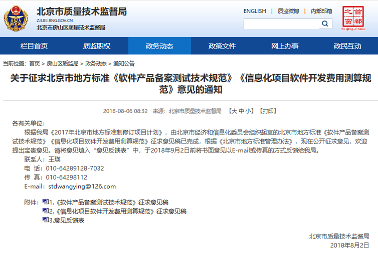 隨著(zhù)軟件開(kāi)發(fā)技術(shù)和社會(huì )經(jīng)濟的發(fā)展,為保持標準技術(shù)內容的先進(jìn)性,有必要定期對標準內容進(jìn)行修訂。因此,北京市質(zhì)量技術(shù)監督局于今年年初下達了對該項標準的修訂計劃(標準修訂項目編號:20181045),由北京軟件造價(jià)評估技術(shù)創(chuàng )新聯(lián)盟(www.bscea.org)等單位牽頭完成。經(jīng)過(guò)標準起草組的討論,標準征求意見(jiàn)稿于2018年7月份完成,并從2018年8月2日-9月2日在北京市質(zhì)量技術(shù)監督局網(wǎng)站上進(jìn)行公開(kāi)征求意見(jiàn)。至今已經(jīng)完成征求意見(jiàn)階段,下一步起草組將會(huì )針對單位反饋的意見(jiàn)進(jìn)行逐條討論和修訂,并及時(shí)完成標準的送審稿和報批稿。