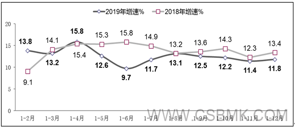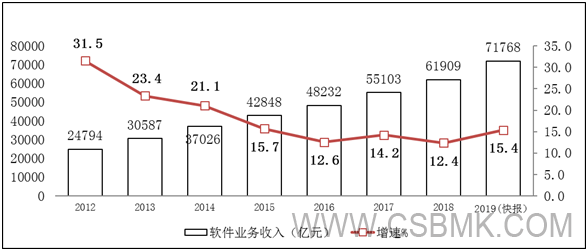 圖1 2012-2019年軟件業(yè)務(wù)收入增長(cháng)情況