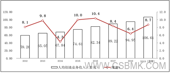 圖2 2012-2019年軟件業(yè)人均創(chuàng )收情況