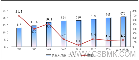圖4 2012-2019年軟件業(yè)從業(yè)人員數變化情況