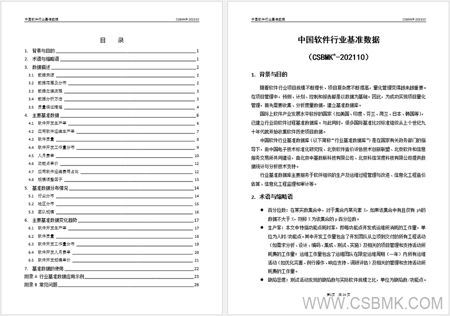 為了提高基準數據報告的易讀性和易用性,方便報告使用者在實(shí)際工作中的應用,本年度基準數據報告增加了關(guān)鍵術(shù)語(yǔ)定義,對關(guān)鍵的術(shù)語(yǔ)如百分位數、生產(chǎn)率、缺陷密度等進(jìn)行了解釋。此外,報告中還增加了針對關(guān)于基準數據應用過(guò)程中的常見(jiàn)問(wèn)題進(jìn)行說(shuō)明,如基于行業(yè)數據評估的軟件開(kāi)發(fā)工作量是否包含了測試、基于行業(yè)數據評估的軟件開(kāi)發(fā)或運維費用是否含稅等。