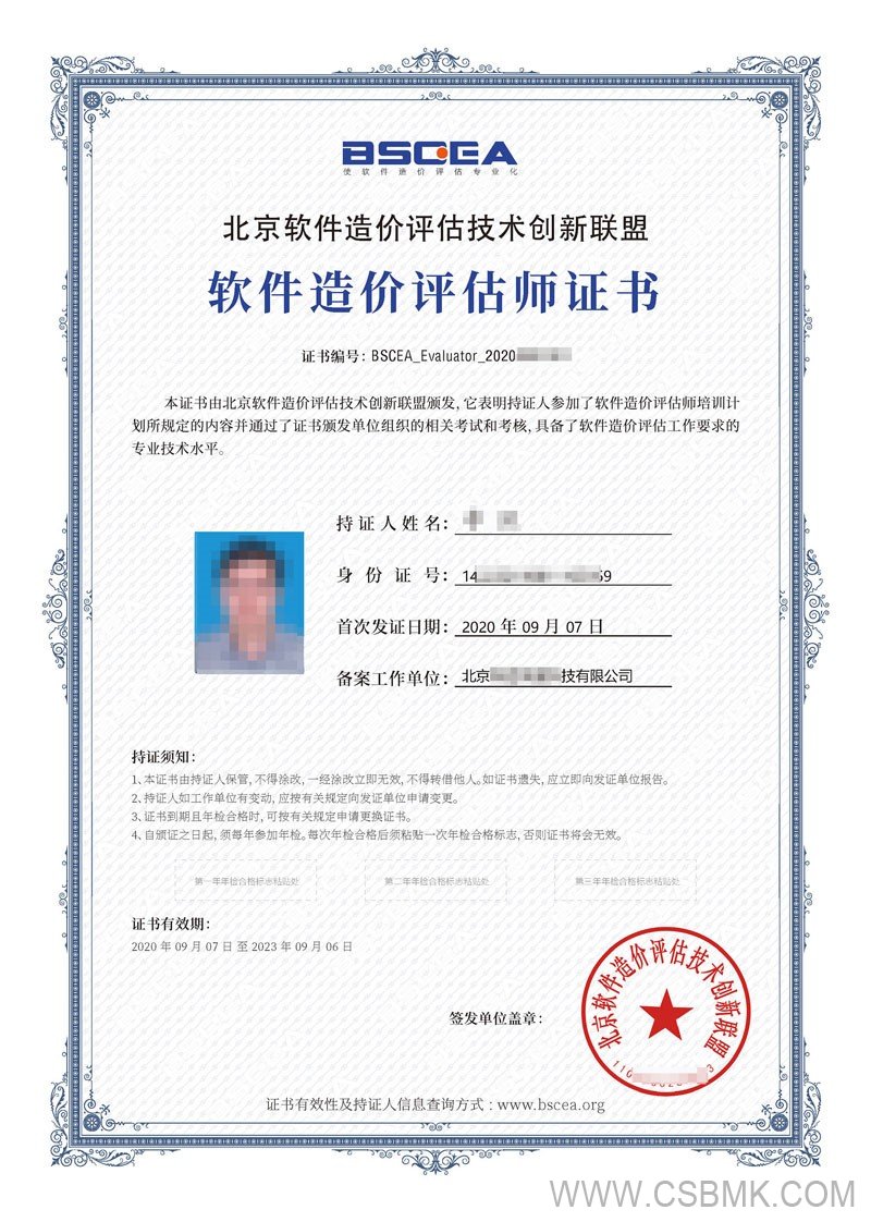 軟件造價(jià)評估師課程是北京軟件造價(jià)評估技術(shù)創(chuàng )新聯(lián)盟依據軟件造價(jià)評估相關(guān)國家標準組織開(kāi)發(fā)的高級職業(yè)技術(shù)課程,通過(guò)課程考核者將獲得聯(lián)盟頒發(fā)的高級職業(yè)技術(shù)證書(shū)——《軟件造價(jià)評估師證書(shū)》。通過(guò)課程考核者,不但可以準確合理的對軟件開(kāi)發(fā)項目的費用進(jìn)行評估,還可以對使用不同估算方法得出的估算結果的準確性、科學(xué)性給出鑒定和判斷,應對不同復雜場(chǎng)景下的項目估算。