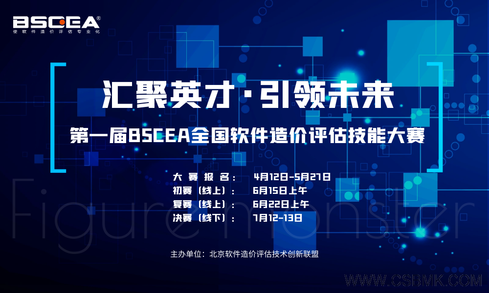 為了培養和選拔軟件造價(jià)評估領(lǐng)域的高技能人才,提高從業(yè)人員的職業(yè)技術(shù)水平,北京軟件造價(jià)評估技術(shù)創(chuàng )新聯(lián)盟(以下簡(jiǎn)稱(chēng)“聯(lián)盟”)決定舉辦“匯聚英才·引領(lǐng)未來(lái)”第一屆BSCEA全國軟件造價(jià)評估技能大賽(以下簡(jiǎn)稱(chēng)“大賽”)。大賽以專(zhuān)業(yè)技術(shù)水平和實(shí)操競技為主要內容,旨在引領(lǐng)人才培養,提供人才評價(jià)手段,打造我國首個(gè)聚焦軟件造價(jià)評估領(lǐng)域的專(zhuān)業(yè)賽事平臺。