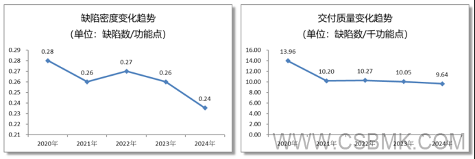 了解《2024年度中國(guó)軟件行業(yè)基準(zhǔn)數(shù)據(jù)(CSBMK®-202410)》更多詳細(xì)內(nèi)容,可通過(guò)以下鏈接免費(fèi)獲?。?a href="http://三、各工程活動(dòng)占比、規(guī)模調(diào)整因子保持穩(wěn)定 2024年軟件開發(fā)各工程活動(dòng)工作量分布變化不大,各階段規(guī)模變更因子保持穩(wěn)定,其中,需求工作量占比穩(wěn)中有升,設(shè)計(jì)工作量占比穩(wěn)中有降。 四、軟件質(zhì)量整體穩(wěn)中向好 近年來(lái)缺陷密度及交付質(zhì)量基本穩(wěn)定并整體向好,缺陷密度中值呈震蕩下行趨勢(shì)。2024年缺陷密度中值為0.24/功能點(diǎn),交付質(zhì)量中值為9.64/千功能點(diǎn),交付質(zhì)量穩(wěn)步提升(即數(shù)值降低)。缺陷密度是指項(xiàng)目交付前各類測(cè)試活動(dòng)發(fā)現(xiàn)的缺陷之和,交付質(zhì)量是指項(xiàng)目交付后6個(gè)月內(nèi)發(fā)現(xiàn)的缺陷總數(shù)。 伴隨每年一度的中國(guó)軟件估算大會(huì),《CSBMK?中國(guó)軟件行業(yè)基準(zhǔn)數(shù)據(jù)》已經(jīng)連續(xù)發(fā)布九個(gè)版本。每年在數(shù)據(jù)發(fā)布前夕,社會(huì)各界翹首期盼,該數(shù)據(jù)已然成為軟件造價(jià)領(lǐng)域被引用次數(shù)最多、行業(yè)影響力最大、認(rèn)可度最高的基準(zhǔn)數(shù)據(jù)。據(jù)不完全統(tǒng)計(jì),截至目前廣東省政府財(cái)政廳、廣西壯族自治區(qū)財(cái)政廳、河南省財(cái)政廳、西藏自治區(qū)發(fā)改委、山東省財(cái)政廳等近20個(gè)省市在以紅頭文件形式發(fā)布的信息化項(xiàng)目預(yù)算管理辦法中,明確要求依據(jù)《CSBMK?中國(guó)軟件行業(yè)基準(zhǔn)數(shù)據(jù)》進(jìn)行相關(guān)費(fèi)用測(cè)算。數(shù)據(jù)的不斷更新和完善離不開數(shù)據(jù)提供者的貢獻(xiàn),希望越來(lái)越多的機(jī)構(gòu)能夠?yàn)檐浖靸r(jià)關(guān)鍵基礎(chǔ)設(shè)施的建設(shè)貢獻(xiàn)一份力量。 了解《2024年度中國(guó)軟件行業(yè)基準(zhǔn)數(shù)據(jù)(CSBMK?-202410)》更多詳細(xì)內(nèi)容,可通過(guò)以下鏈接免費(fèi)獲?。篽ttps://www.bscea.org/html/rjjzsj/ndsj/2024/1030/2616.html">https://www.bscea.org/html/rjjzsj/ndsj/2024/1030/2616.html